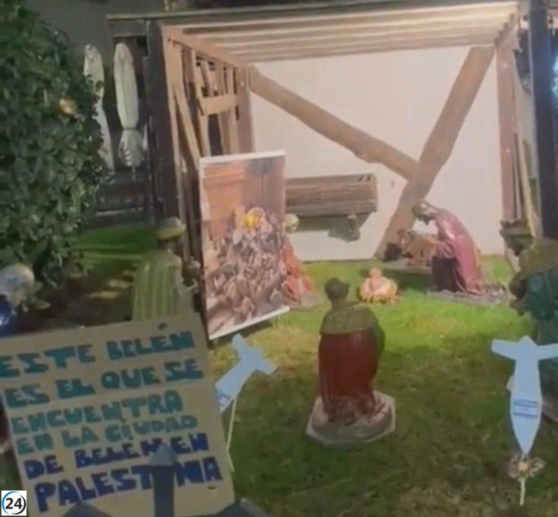El Belén de la plaza de la Hispanidad de Cuenca ha sufrido una controvertida modificación este sábado, ya que ha aparecido adornado con figuras de proyectiles y carteles denunciando los ataques de Israel a Palestina.