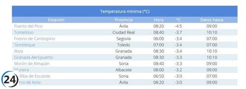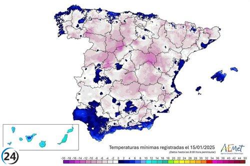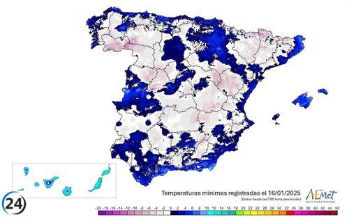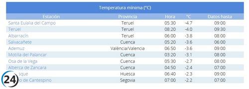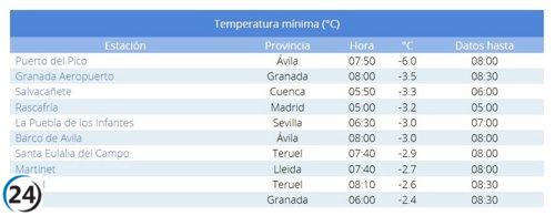 Salvacañete enfrenta un frío récord, alcanzando -3,3ºC, la tercera temperatura más baja en España.