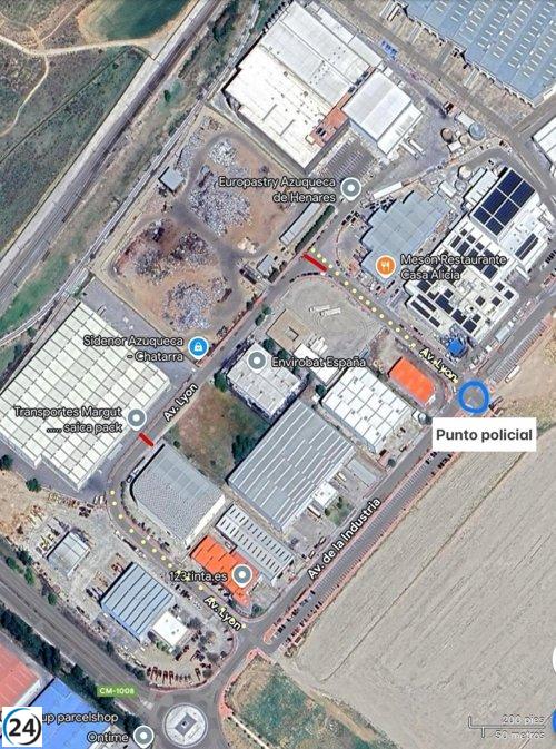 Azuqueca restringe el tráfico alrededor del polígono Ródano tras incendio.