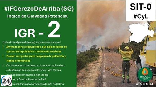 Incendio de Peñalba alcanza Castilla y León, elevando alerta a gravedad 2 en Cerezo de Arriba.